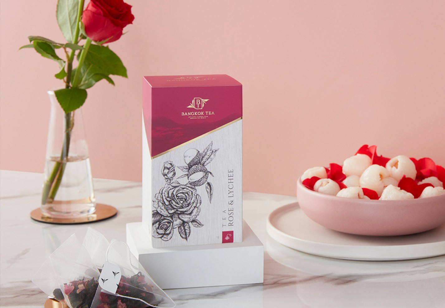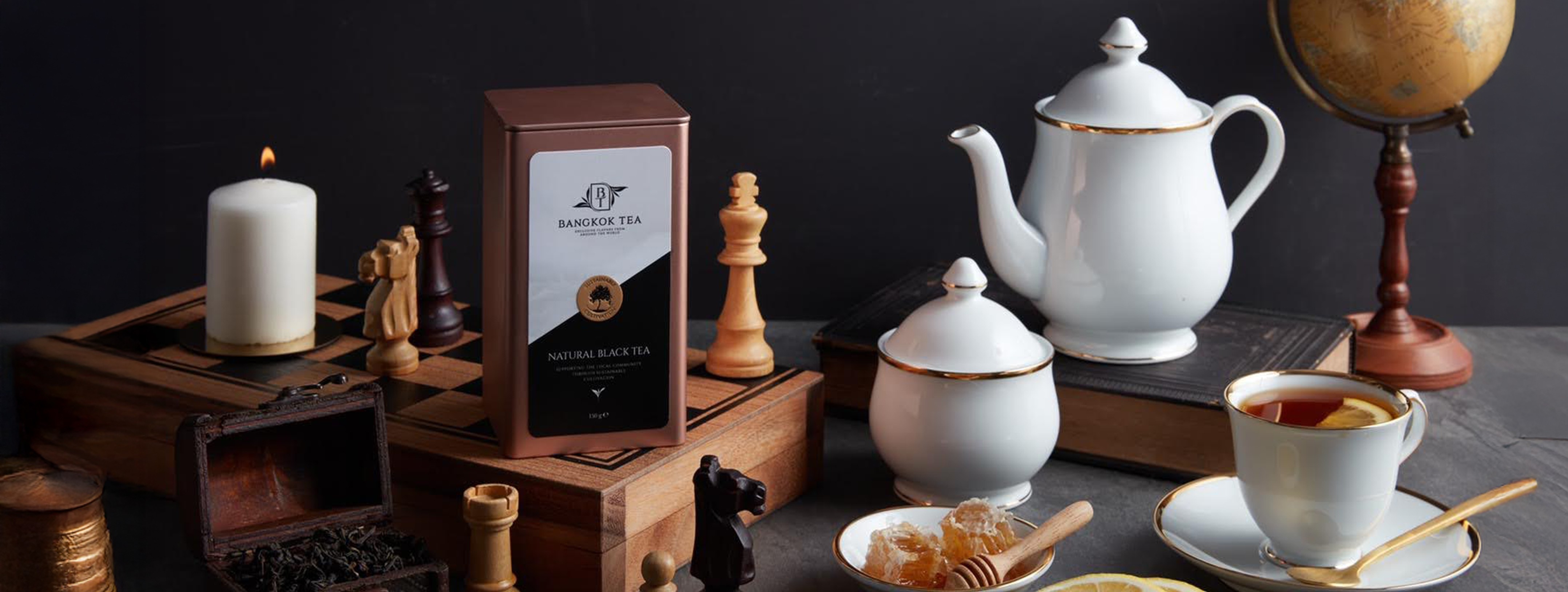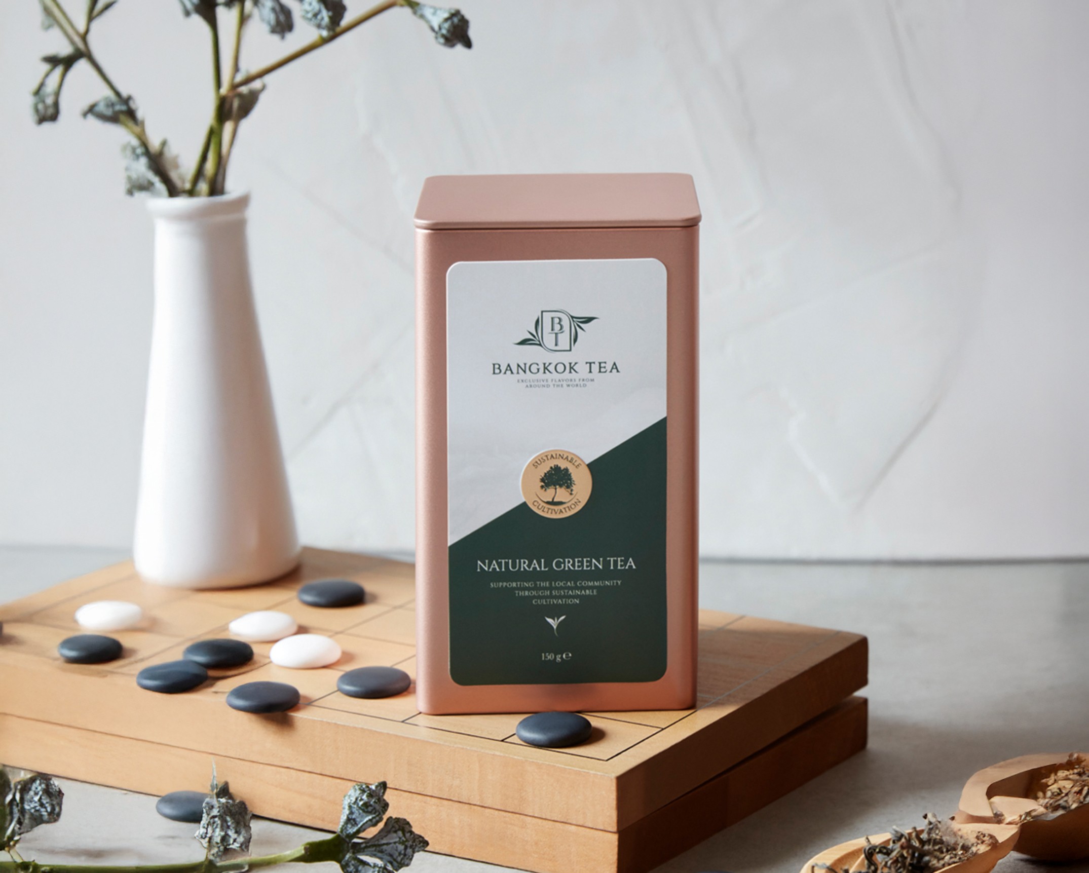 Nous devions créer un positionnement et un design de logo qui reflètent parfaitement la haute qualité des variétés de thé haut de gamme et des infusions. Un logo époustouflant utilise une police solide et confiante en majuscules pour le nom de la marque, accompagnée d'un motif de feuille joliment stylisé. Nous avons également conçu le slogan très approprié "Saveurs Exclusives du Monde Entier".