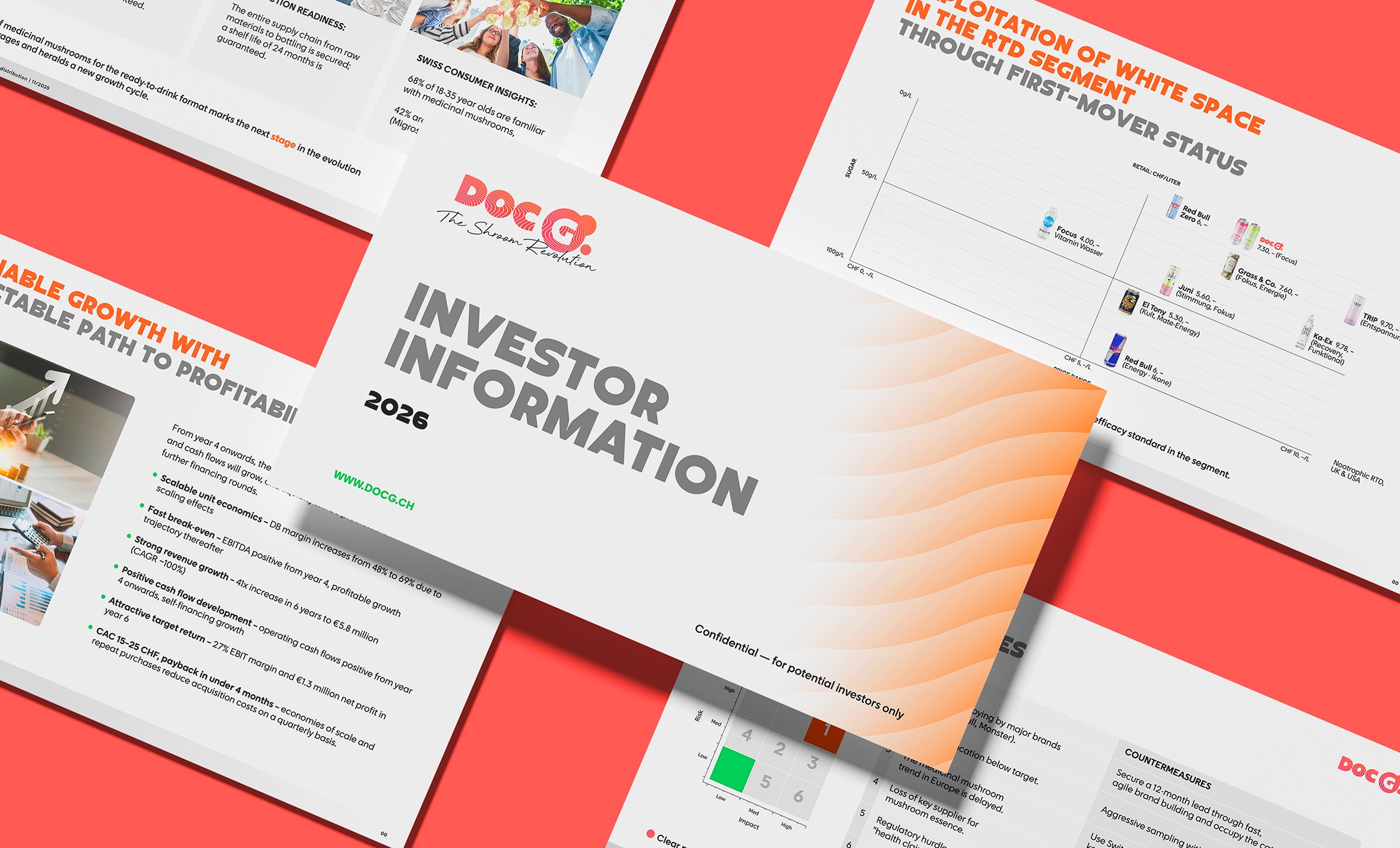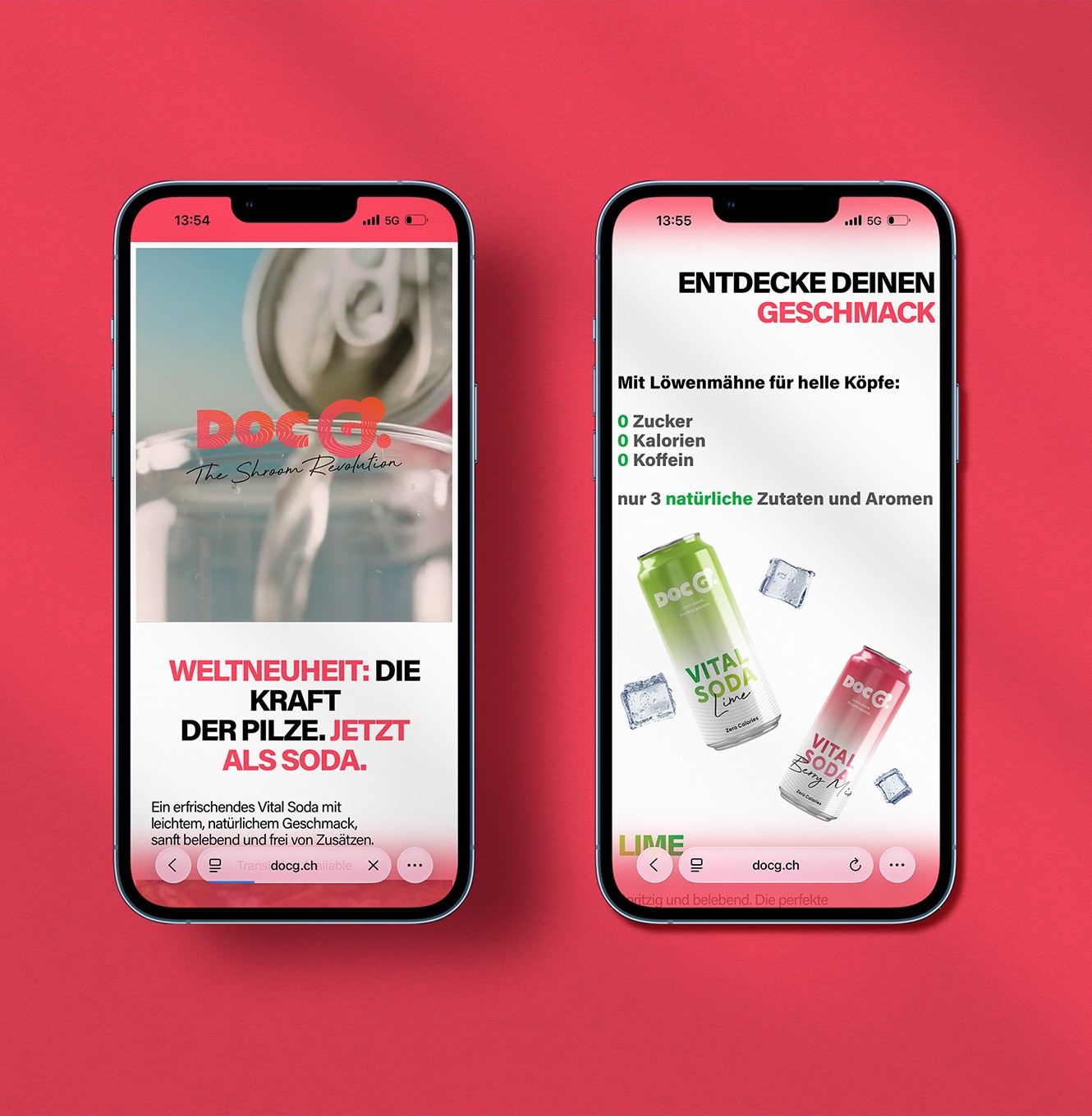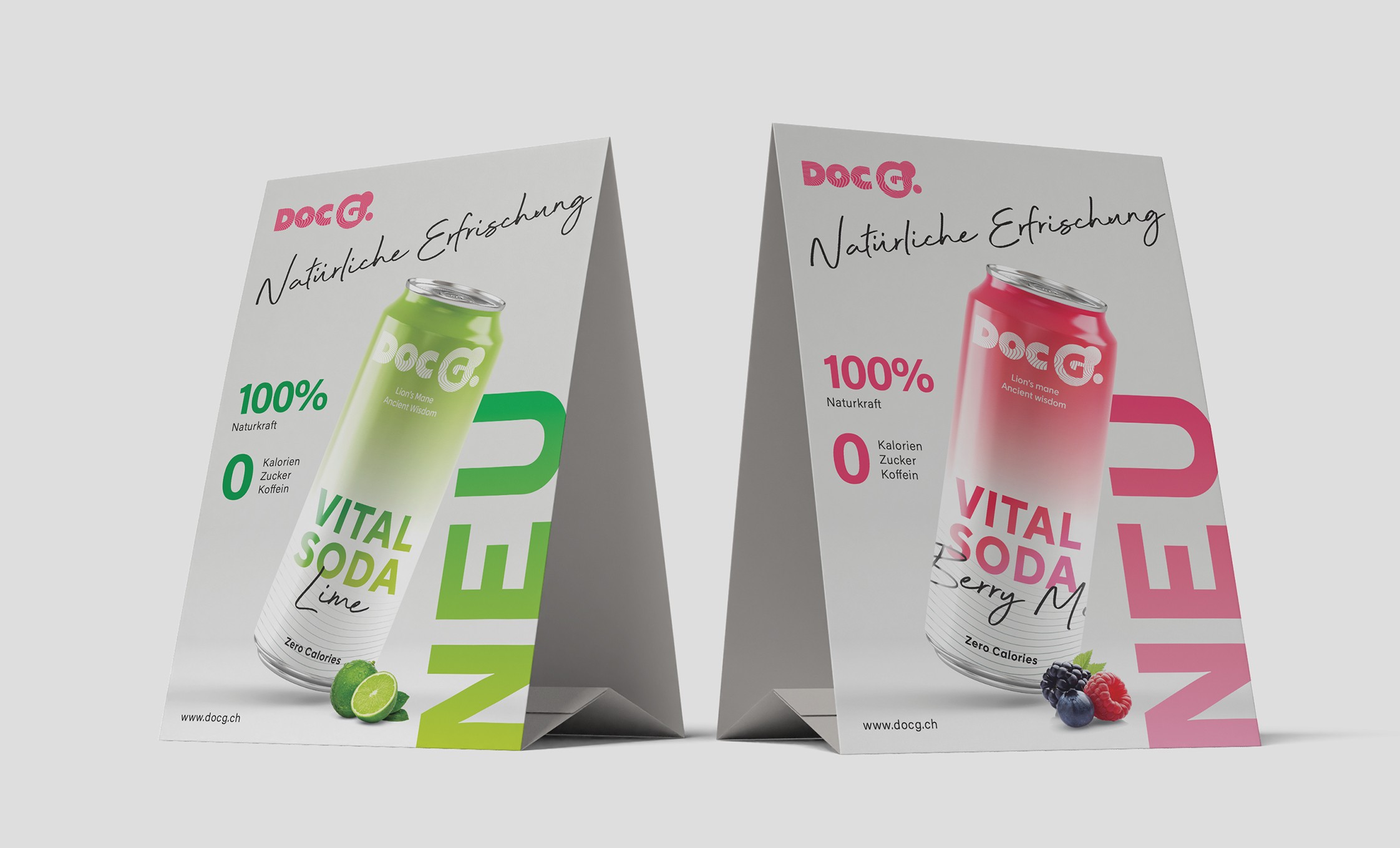 The functional beverage market is growing fast, but most products in the space fall into one of two traps: they either look too clinical and cold, or too gimmicky to be trusted. Doc G.'s real competitive advantage — patented high-tech extraction technology, scientifically validated effectiveness, and premium Swiss-made purity — risked being lost in a category where shelf presence and cultural resonance matter as much as ingredients. The challenge was to build a brand that could speak authentically to a young, trend-aware Swiss urban audience while communicating genuine functional credibility. The identity needed to carry the weight of the science without losing the energy, humour, and boldness that would make it travel on a can, on a screen, and at a festival. "The brief was clear: Doc G. had to feel like a cultural moment, not a health product. It had to be the kind of can you'd reach for because it looks incredible — and come back to because it works."