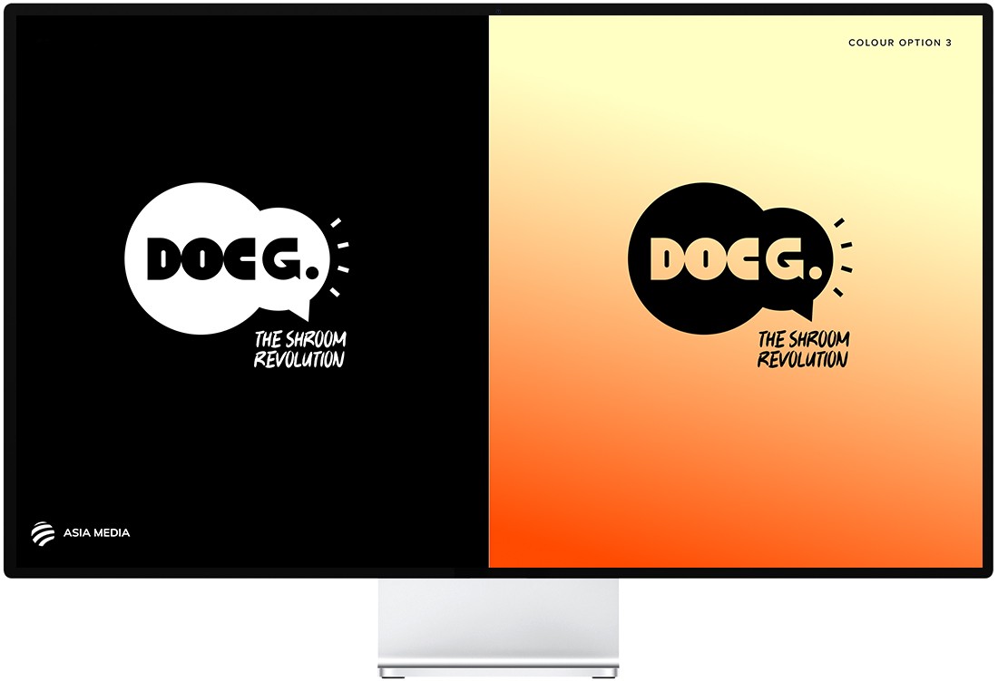 We began with brand strategy — defining Doc G.'s positioning at the intersection of functional wellness and urban lifestyle culture, shaping the tone of voice, key messages, and the brand tagline: The Shroom Revolution. The brand territory was built around six core keywords — Cheerful, Innovative, Knowledgeable, Modern, Energetic, Spiritual — and everything that followed was tested against them. Logo development explored five distinct concept directions, each drawing from the product's core ingredients and personality: mushroom textures and fizzy bubbles, burst lines and upward arrows, organic forms and precision targets, minimalist wordmarks with infinity symbols, and abstract circular constructions. Each concept was visualised across full can mockups to stress-test how the identity held up in real-world context, across colour options, and at small scale. Packaging design, print collateral, and the website were developed in parallel — ensuring a unified visual language from the 330ml slim-can to digital touchpoints. The can design balances bold typography and the brand's energetic colour palette with clear flavour navigation across the three product lines: Mind Blow (Lion's Mane), Chill Out (Reishi), and Keep Going (Cordyceps).