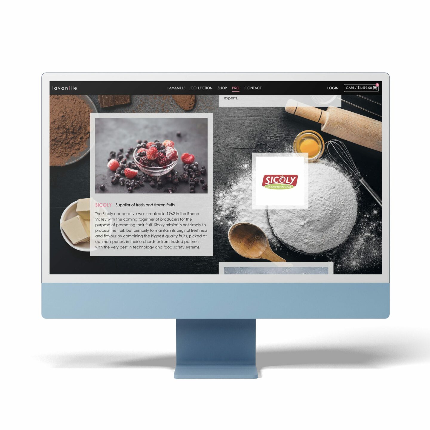 Sur le site Web, vous pouvez également consulter les produits de pâtisserie et de boulangerie, ainsi que les produits fruitiers fabriqués en Europe et faire vos achats en ligne.