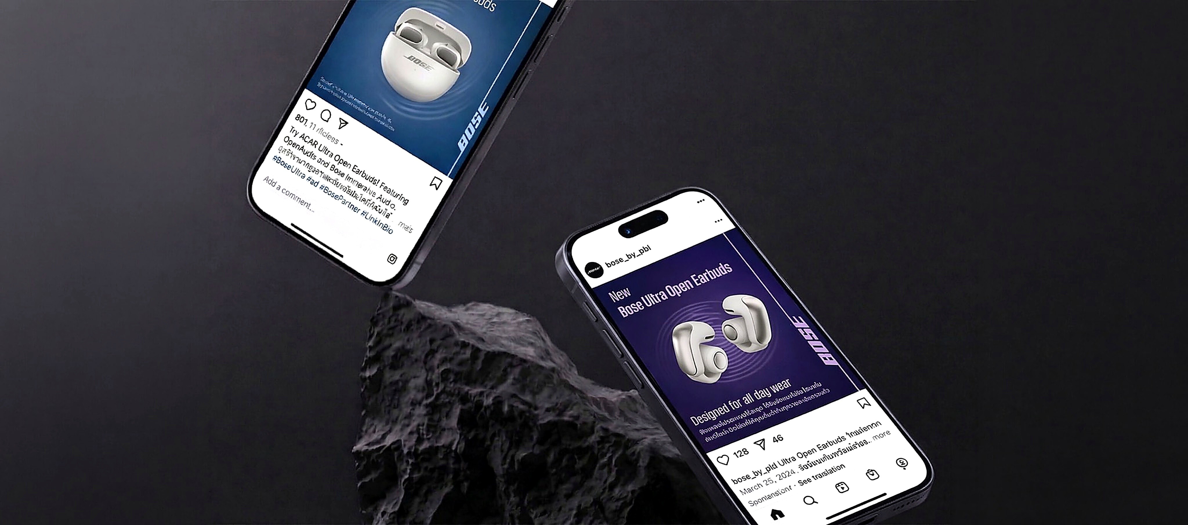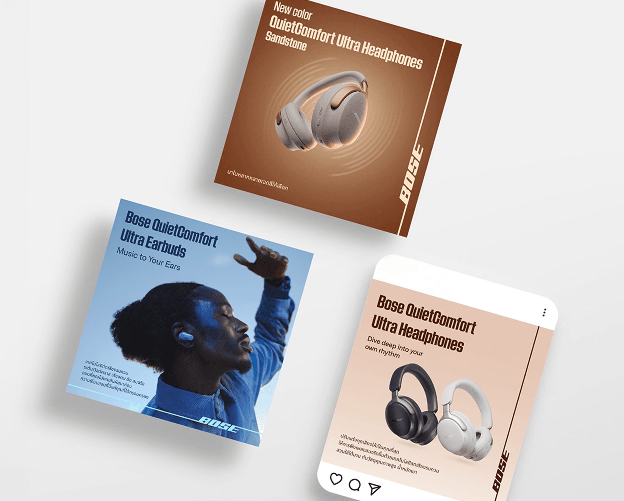 Un autre succès clé du projet est d'obtenir une compréhension plus approfondie des directives et de l'identité de la marque Bose. Notre chef de projet et notre designer ont étudié en profondeur l'apparence générale, la sensation et les nuances des directives, s'assurant que chaque conception de publication et le ton de chaque légende s'alignent parfaitement avec les normes établies et les attentes de la marque Bose.