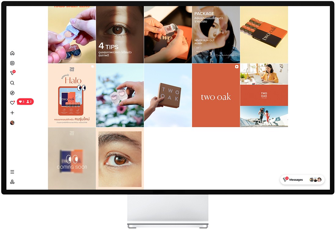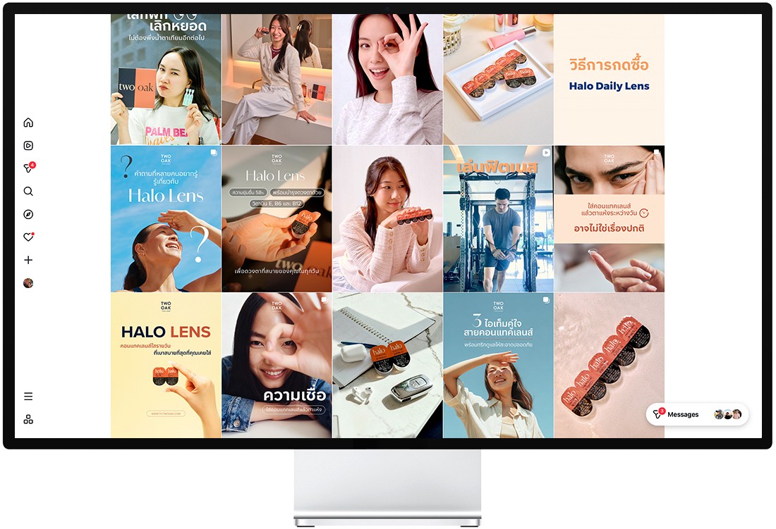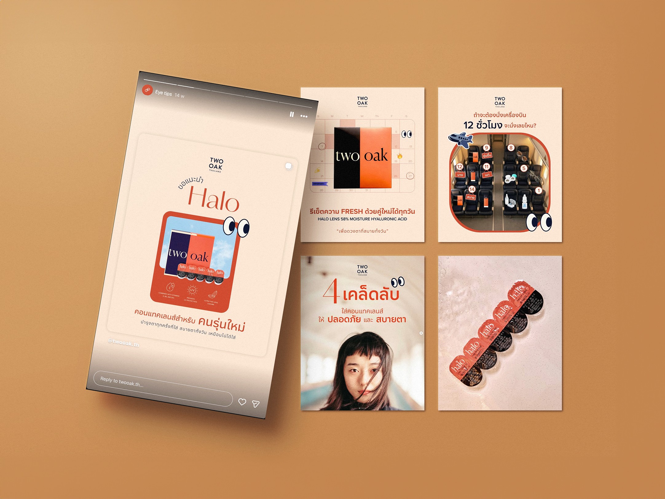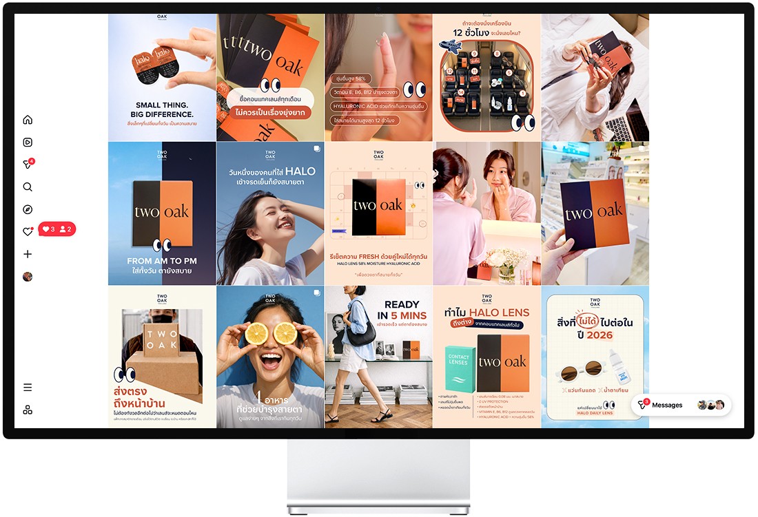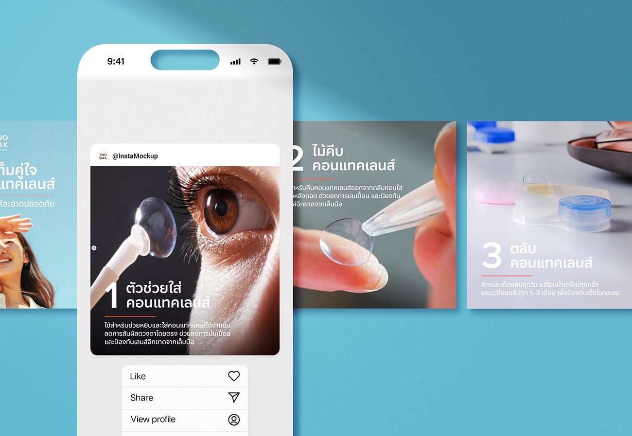 Contact lenses are an intimate, health-adjacent product. Thai consumers are cautious — they rely on peer reviews, visual proof, and relatable storytelling before trying a new brand. The challenge was translating an international DTC brand into a locally resonant Instagram presence — one that felt warm, modern, and trustworthy while staying consistent with TWOOAK’s broader brand identity.