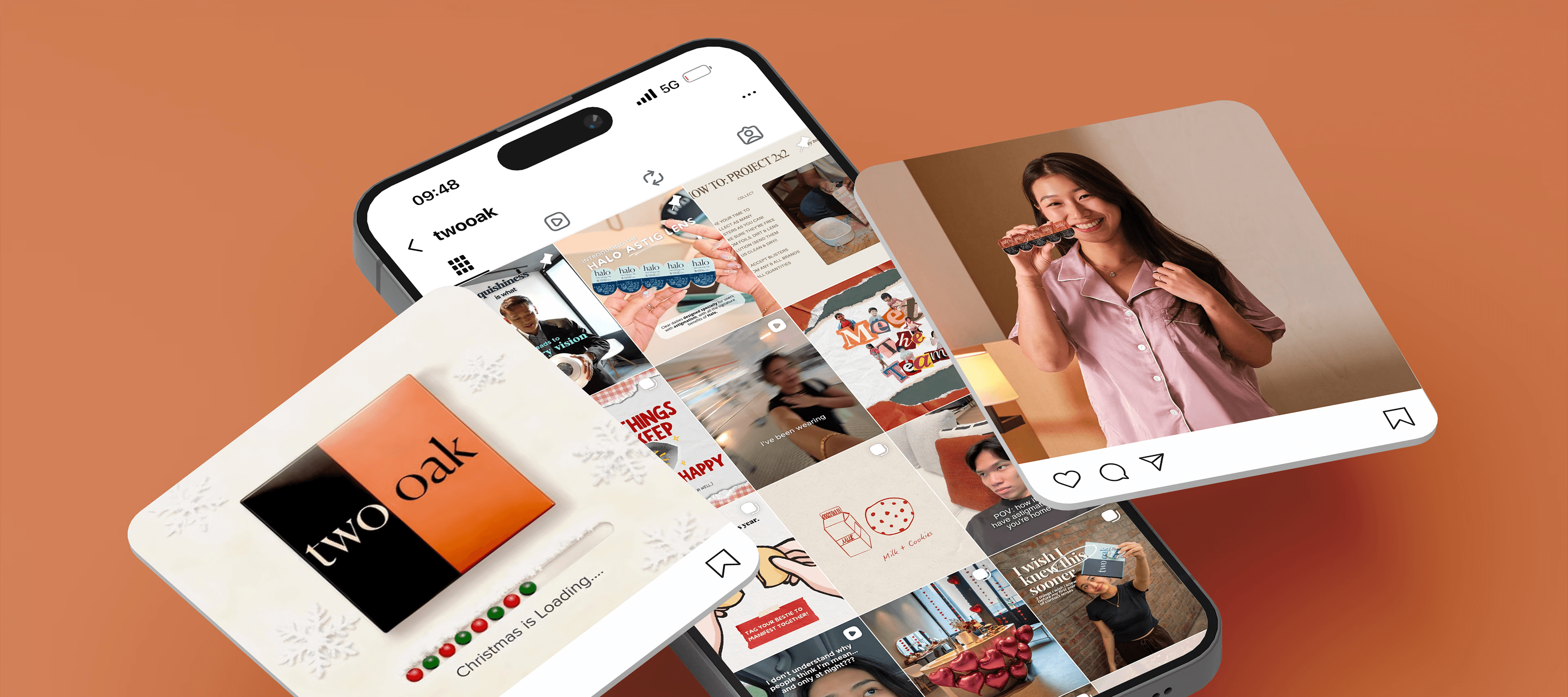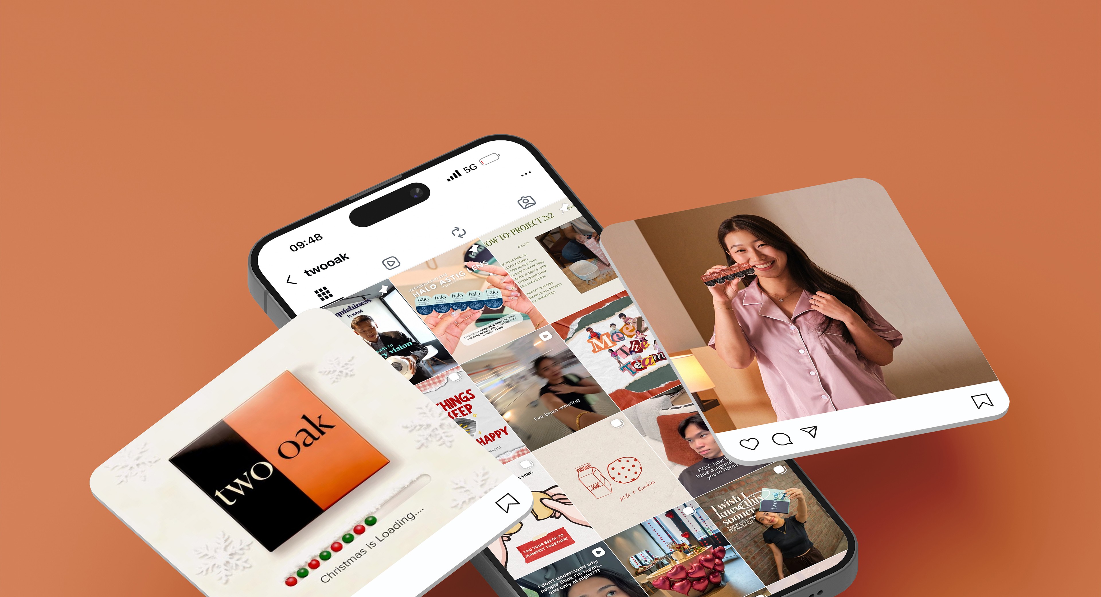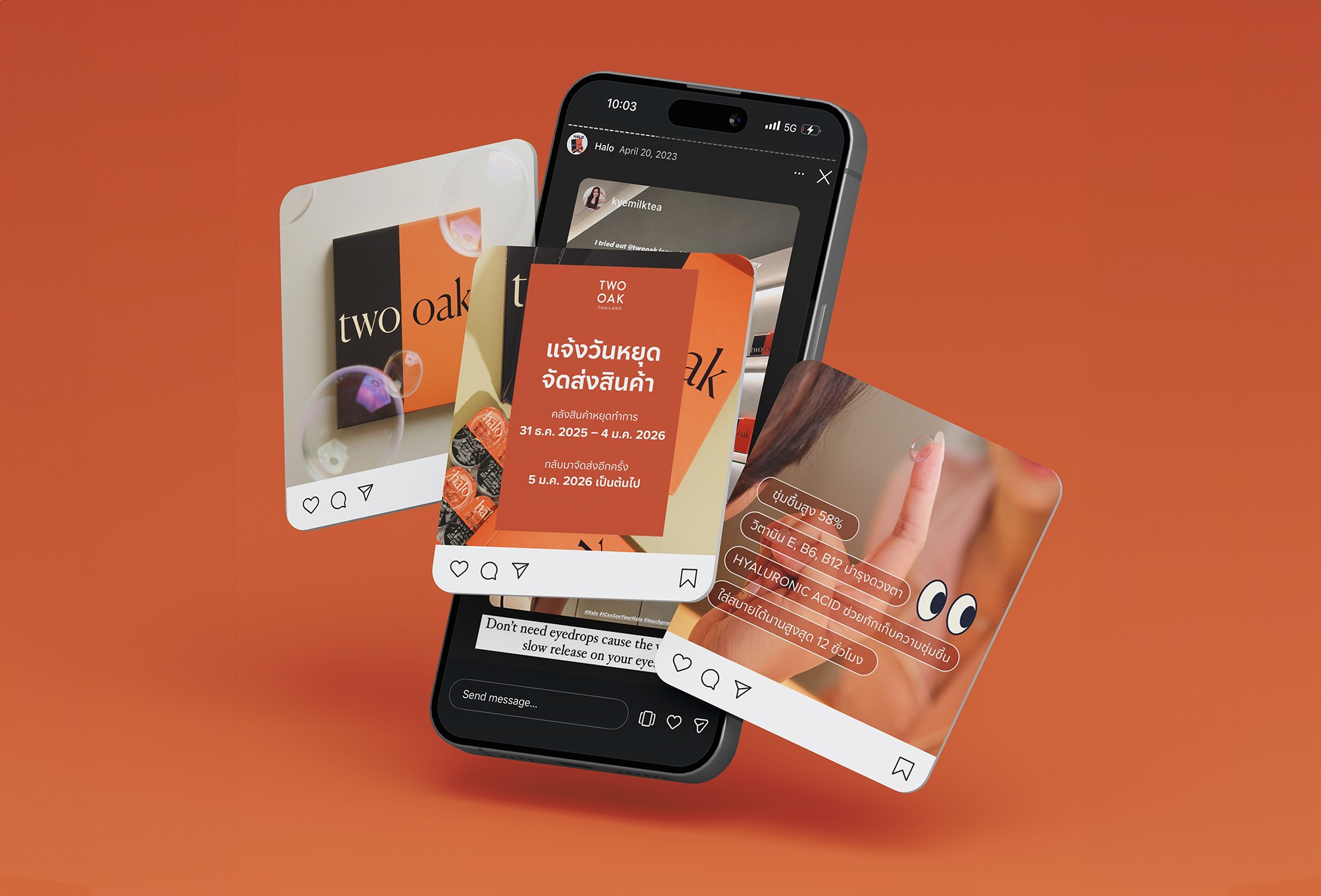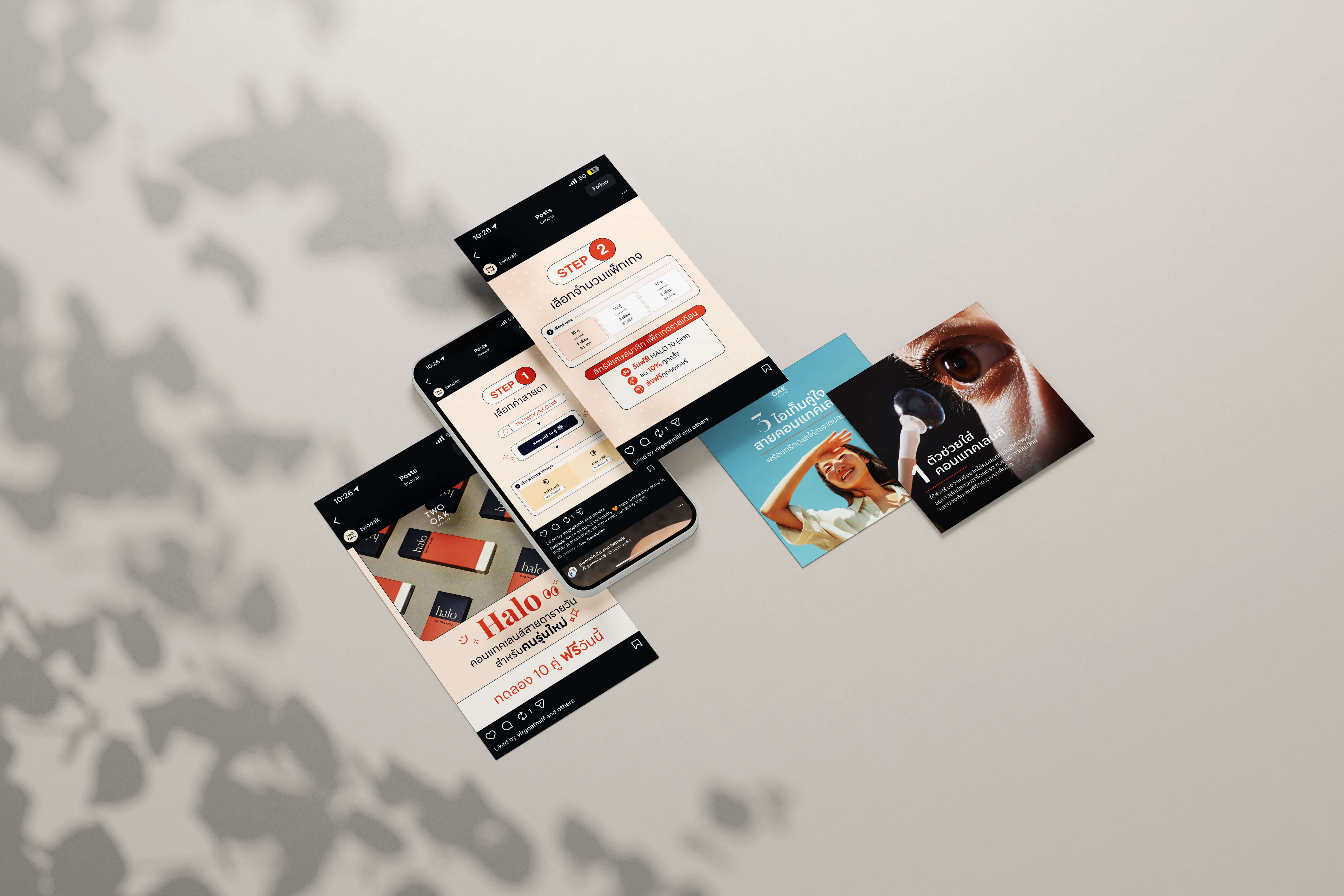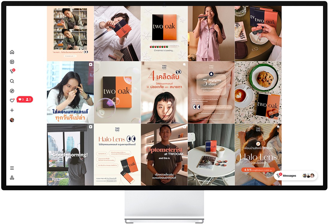 Contact lenses are an intimate, health-adjacent product. Thai consumers are cautious — they rely on peer reviews, visual proof, and relatable storytelling before trying a new brand. The challenge was translating an international DTC brand into a locally resonant Instagram presence — one that felt warm, modern, and trustworthy while staying consistent with TWOOAK’s broader brand identity.