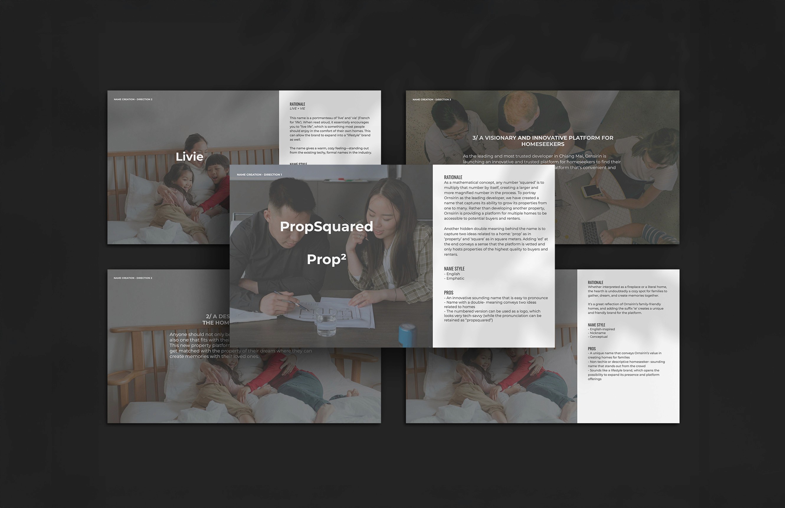 Pour Ornsirin, nous avons établi une stratégie de positionnement de marque solide sur le marché compétitif du développement résidentiel en Thaïlande. Notre travail s'est concentré sur la définition des segments de l'audience cible, des récits de style de vie et de la différenciation au-delà de la concurrence axée sur les prix. Nous avons structuré l'architecture du message de marque pour mettre en avant la qualité architecturale, la confiance et la valeur d'investissement à long terme. La fondation stratégique a informé l'identité visuelle et la plateforme digitale, garantissant la cohérence à travers tous les canaux de communication. Le résultat est un système de marque cohérent qui renforce la crédibilité et soutient la croissance durable.