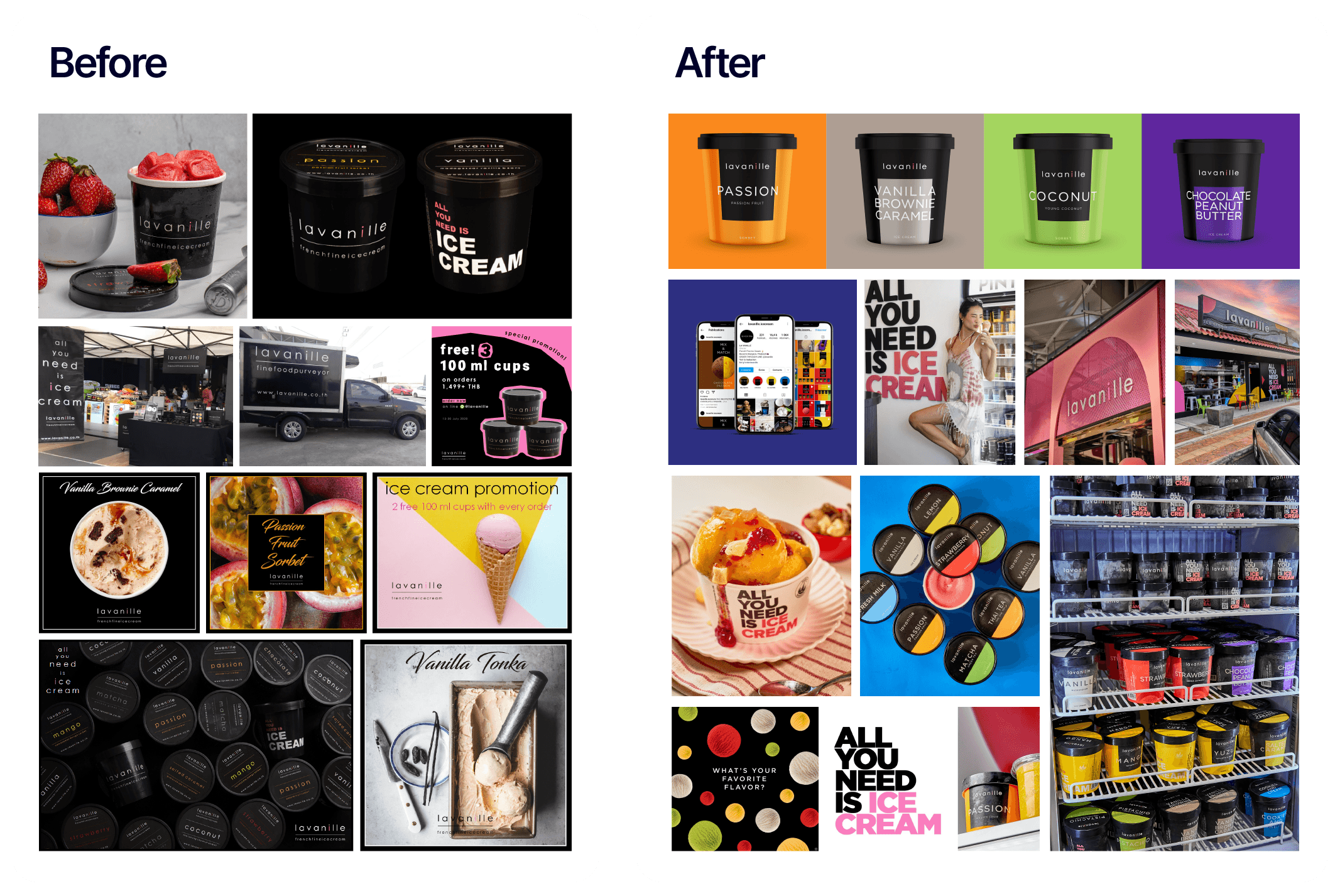 La Vanille has been creating unique ice cream and sorbet flavours since 2008. The company sources the best quality ingredients and supplies homemade ice cream to restaurants, five-star hotels, and online consumers. As the brand expanded from B2B hotel supply into direct-to-consumer sales, it needed a refreshed identity and packaging that could compete on retail shelves and in social media feeds.
