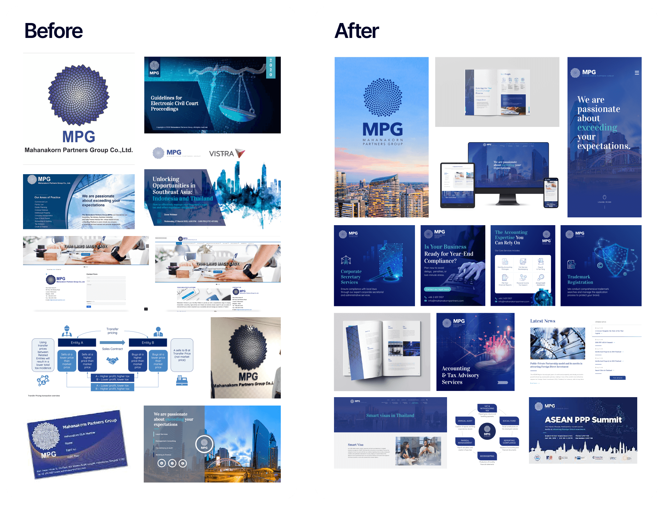 Established in 1999, Mahanakorn Partners Group (MPG) had grown into a leading professional services firm with presence in six Southeast Asian countries and alliances across Asia Pacific and Europe. The company needed its visual identity to match its market position as a trusted, modern, and authoritative firm.