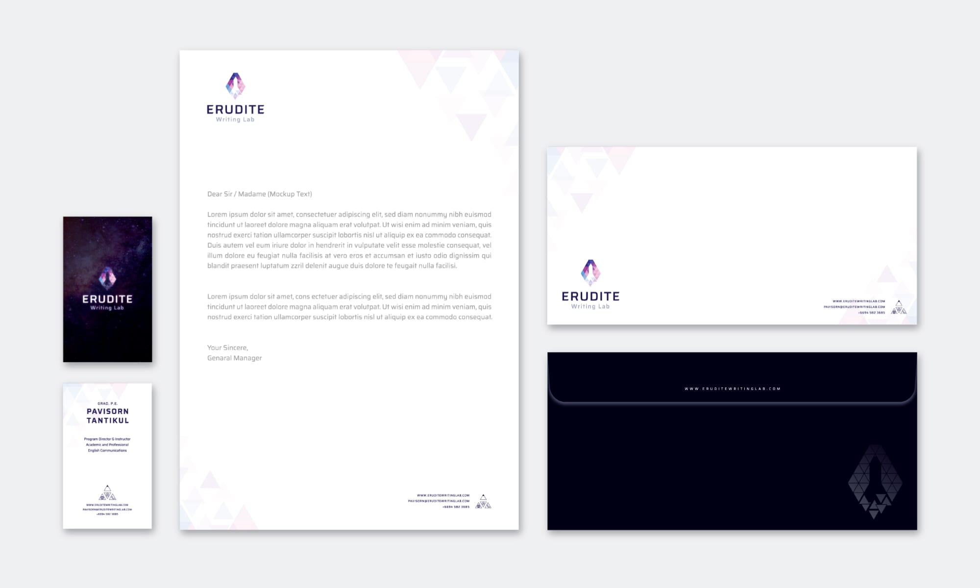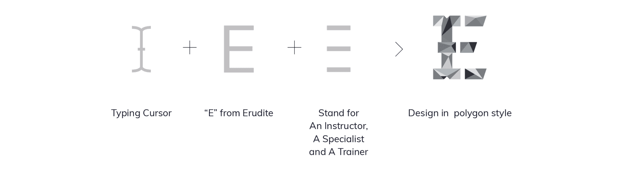 Inspiration: Combination of Typing Cursor for writing, “E” for Erudite and 3 lines for Erudite’s success consultants. Create logo symbol in polygon style, show brand purpose and mood & tone.