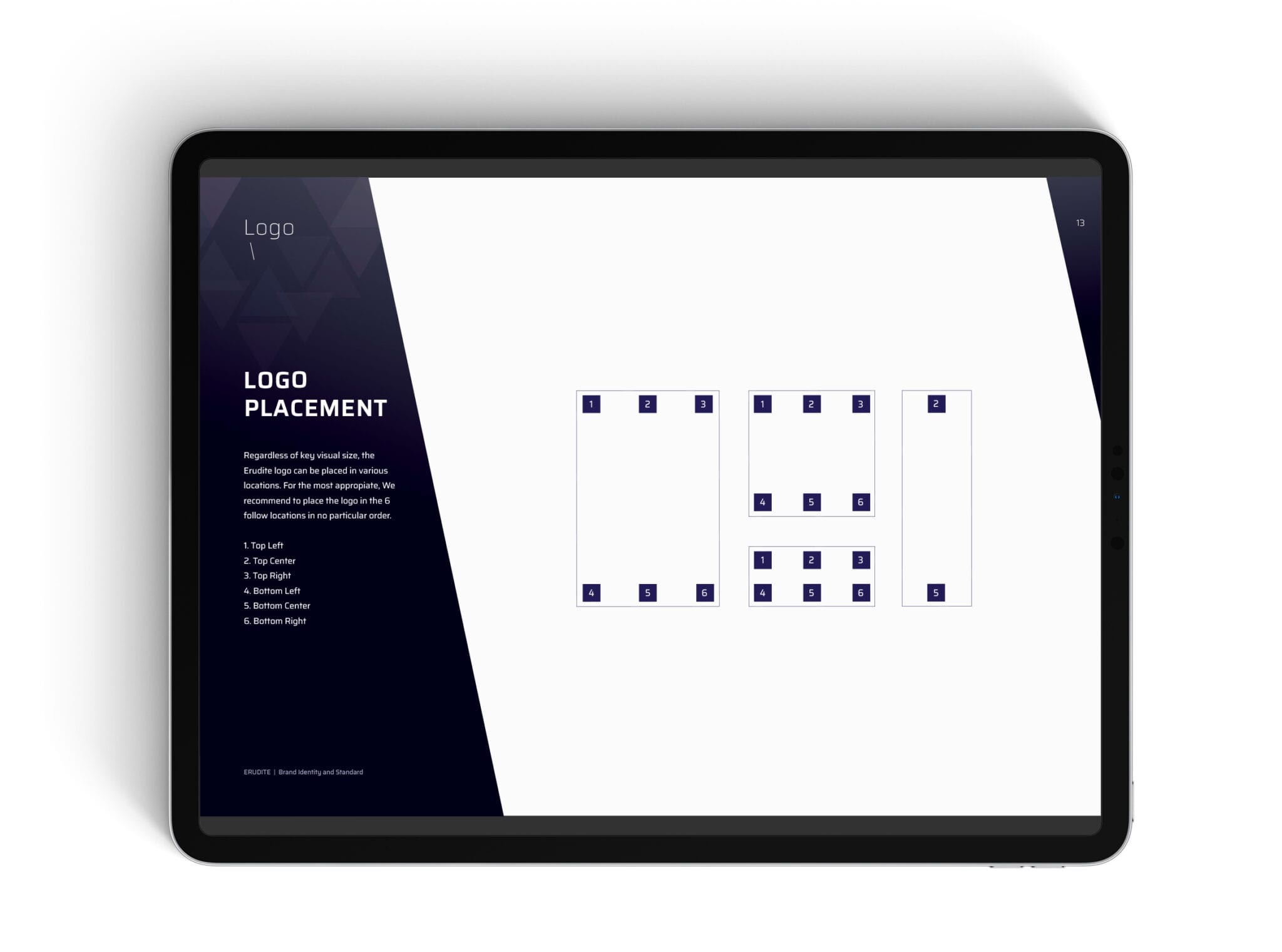 Here are some pages of the Erudite’s Brand Manual concerning the logo use. It indicates people how to display the logo in a good way, and to avoid making mistakes that might cost you money in the end.