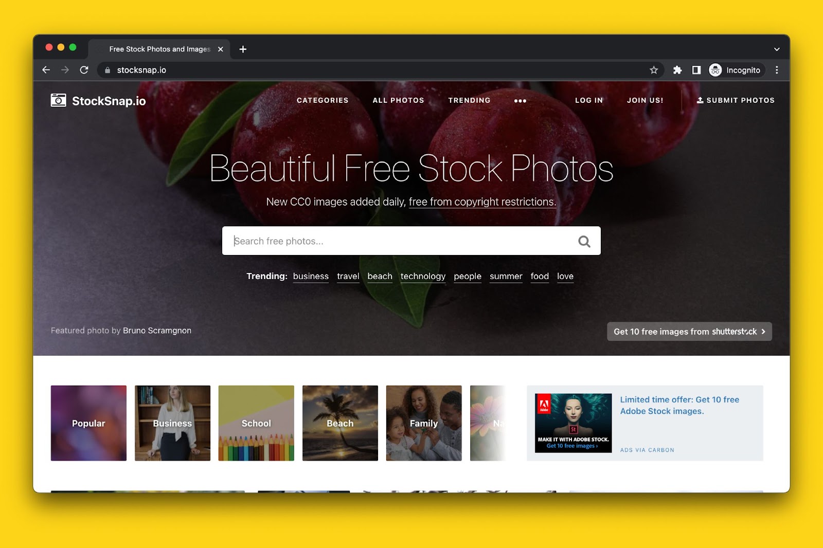 Gratisography is a free stock photo website that offers high-resolution images that are completely free of copyright restrictions. The site has a wide variety of images, including landscapes, nature, wildlife, people, food, technology and more.