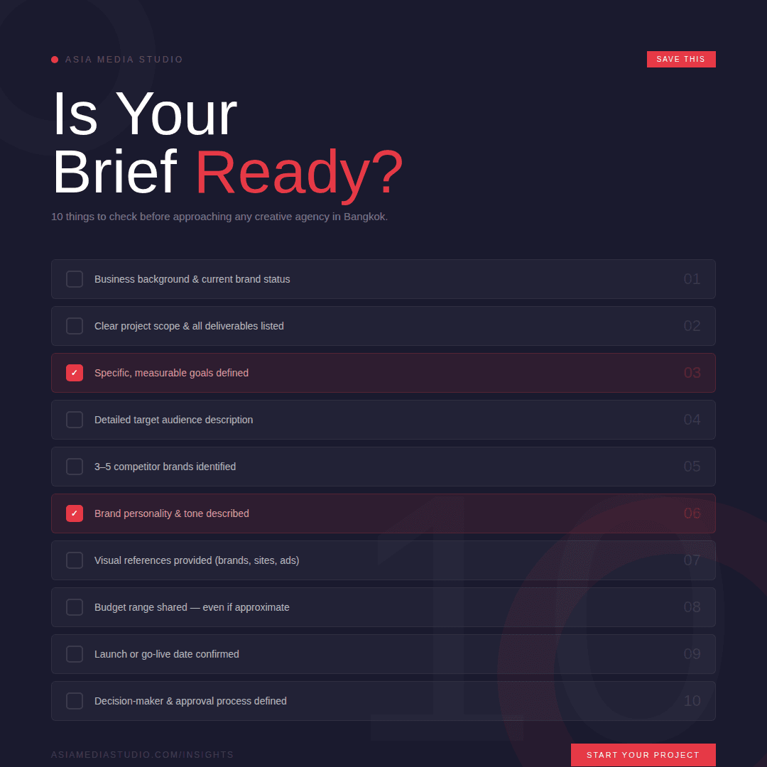 In Bangkok's competitive business landscape — where speed-to-market matters and agency rates are premium — a poor brief is an expensive mistake.