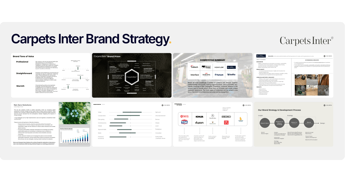 Carpets Inter, a major player in Thailand's carpet and flooring industry, engaged us for brand strategy work to strengthen their market position and refine how their brand communicates quality, design expertise, and industry leadership to both B2B and end-consumer audiences.