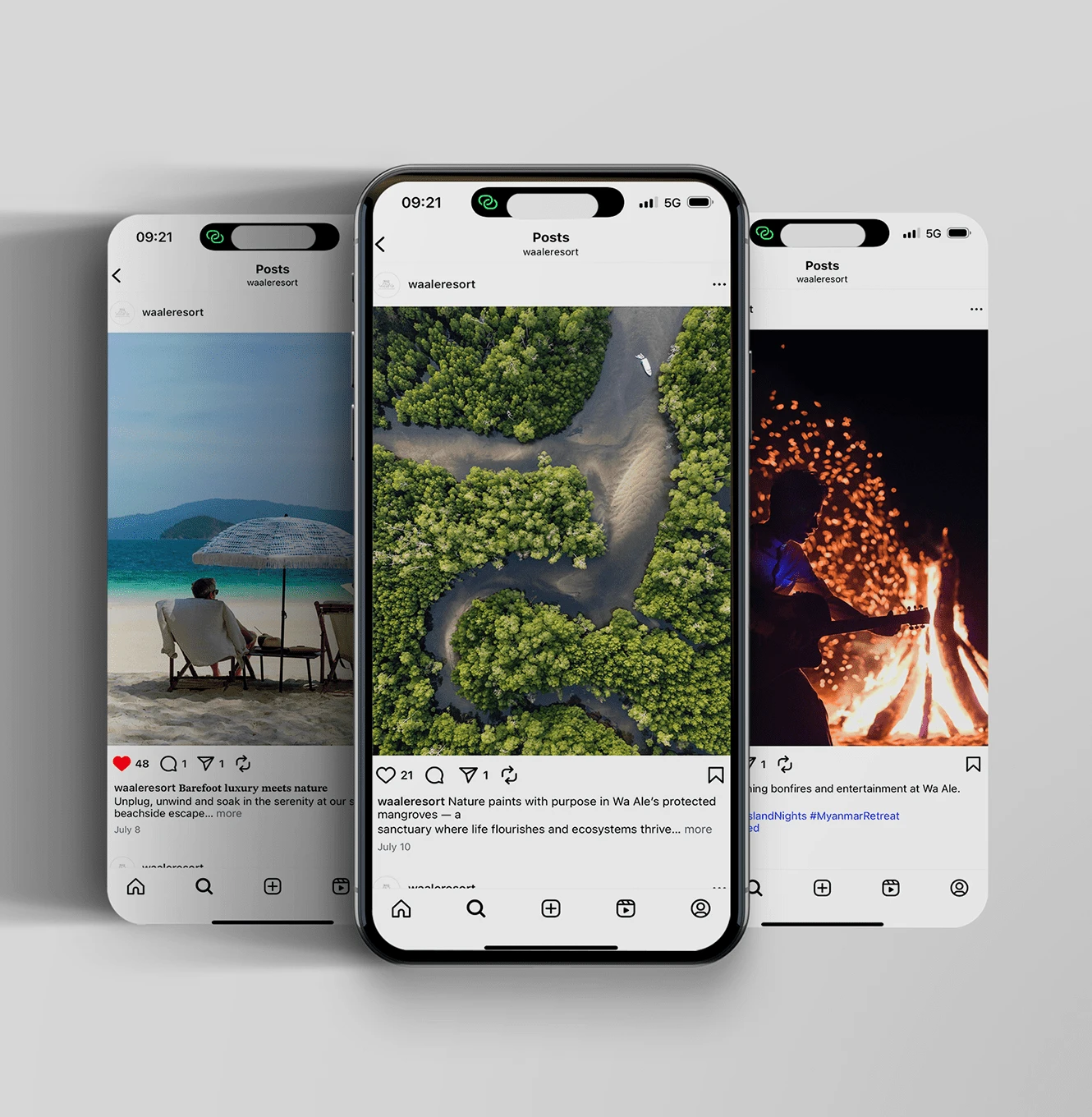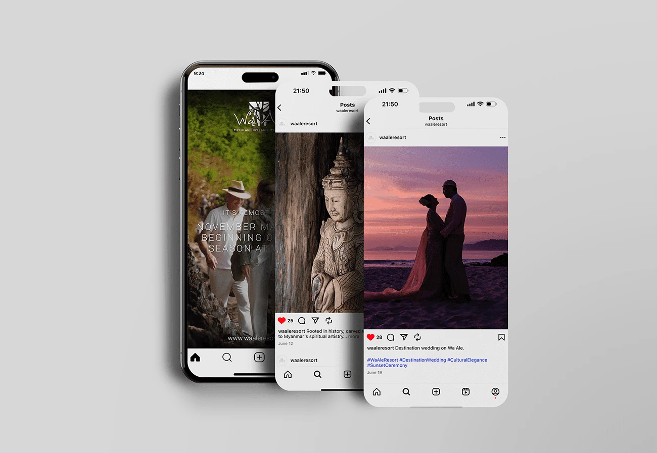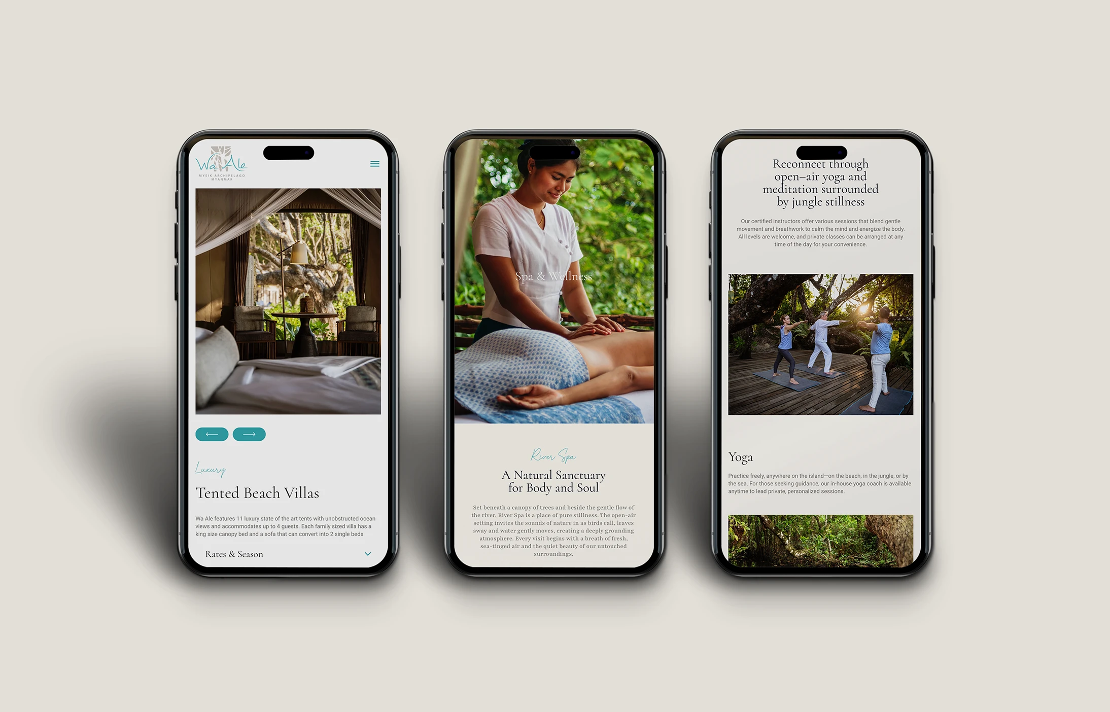 Wa Ale aimed to elevate its digital presence and refine its brand expression. Asia Media Studio proposed a new creative direction, offering clean, minimal design concepts that enhanced the premium positioning of the resort. The updated visuals focused on immersive photography, reduced copy, and a calmer tone, reinforcing Wa Ale’s identity as an exclusive, nature-led destination.