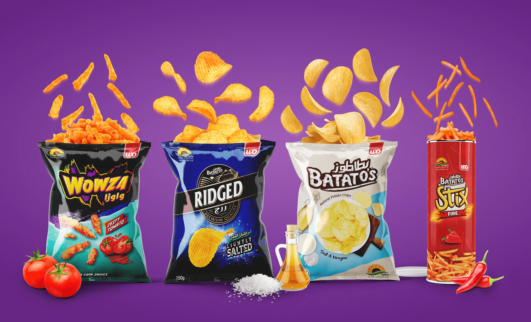 We were commissioned to create branding for a Qatari chip company, producing three unique brand identities. These brands share a common positioning but possess distinct visual identities suited to each product. Furthermore, we’ve designed comprehensive packaging for all three brands.