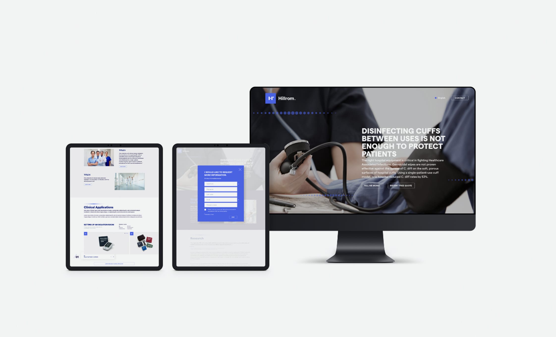 Hillrom ได้ขอให้เราใช้ประสบการณ์การออกแบบเว็บของเราในการพัฒนาเพจแลนดิ้งจำนวนมากที่มุ่งเน้นไปที่แคมเปญโฆษณาที่แตกต่างกัน เพจเหล่านี้ได้รับการออกแบบมาโดยเฉพาะเพื่อแบ่งปันข้อมูล การวิจัย และทรัพยากรกับผู้เชี่ยวชาญด้านการดูแลสุขภาพและเพื่อส่งเสริมอุปกรณ์ทางการแพทย์ การรักษาความคิดสร้างสรรค์จึงต้องมีความเรียบง่ายและทันสมัย ทำให้เนื้อหาชัดเจนมากสำหรับผู้ใช้ในขณะเดียวกันก็แสดงอัตลักษณ์ทางสายตาของแบรนด์ Hillrom อย่างสมบูรณ์แบบ.