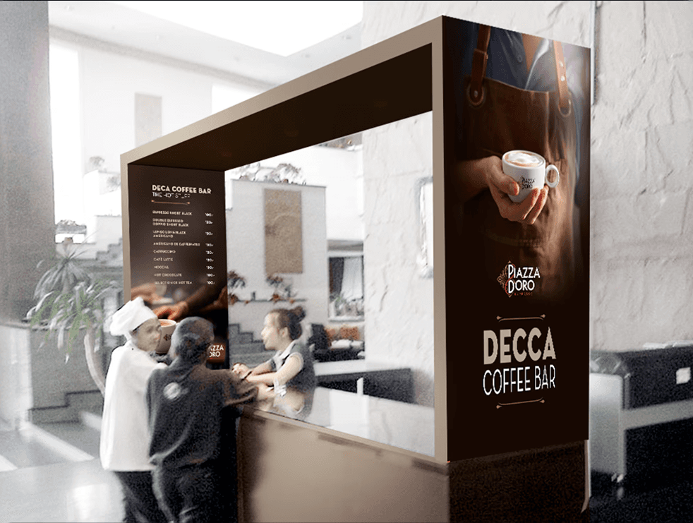 เราได้ทำงานร่วมกับ JDE ในการพัฒนาทางการค้าอย่างประสบผลสำเร็จเพื่อจัดทำโซลูชันที่ปรับแต่งสำหรับผลิตภัณฑ์อาหารและเครื่องดื่มที่มุ่งเป้าไปที่โรงแรม งานสัมมนา การประชุม และนิทรรศการ ซึ่งรวมถึงการออกแบบและการก่อสร้างคีออสกาแฟที่มีอุปกรณ์กรองกาแฟจาก JDE เอง ผลิตภัณฑ์ที่มีแบรนด์ และส่วนผสมต่างๆ