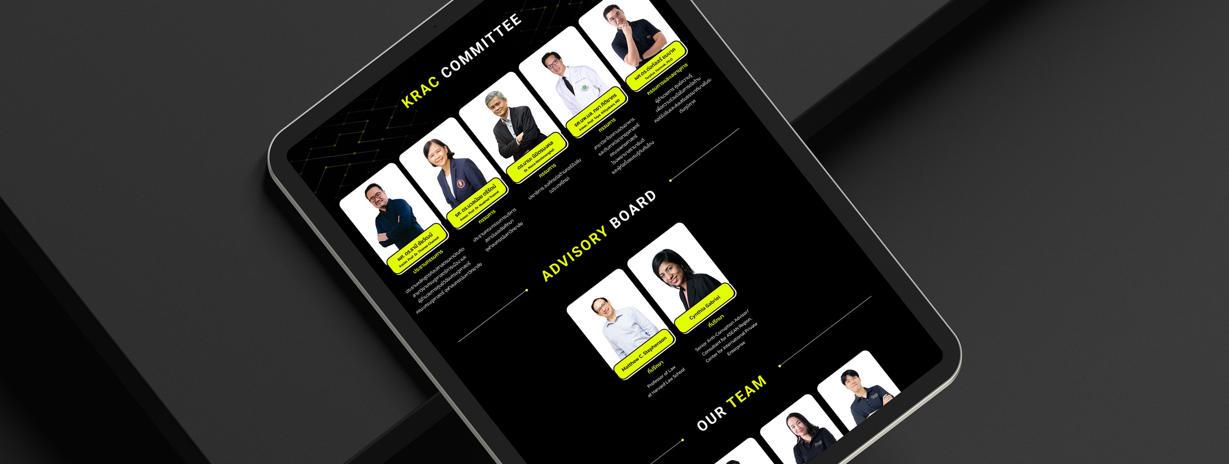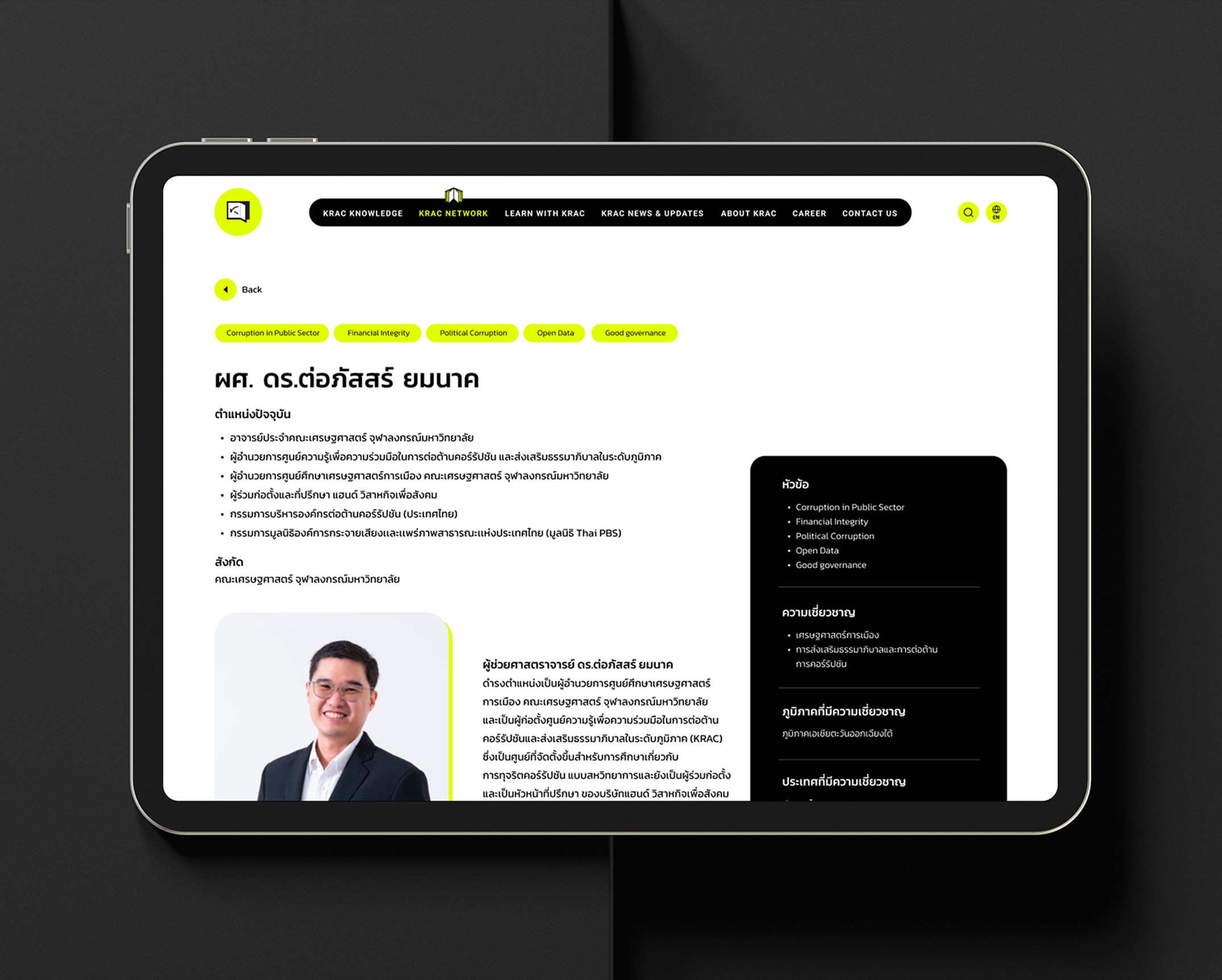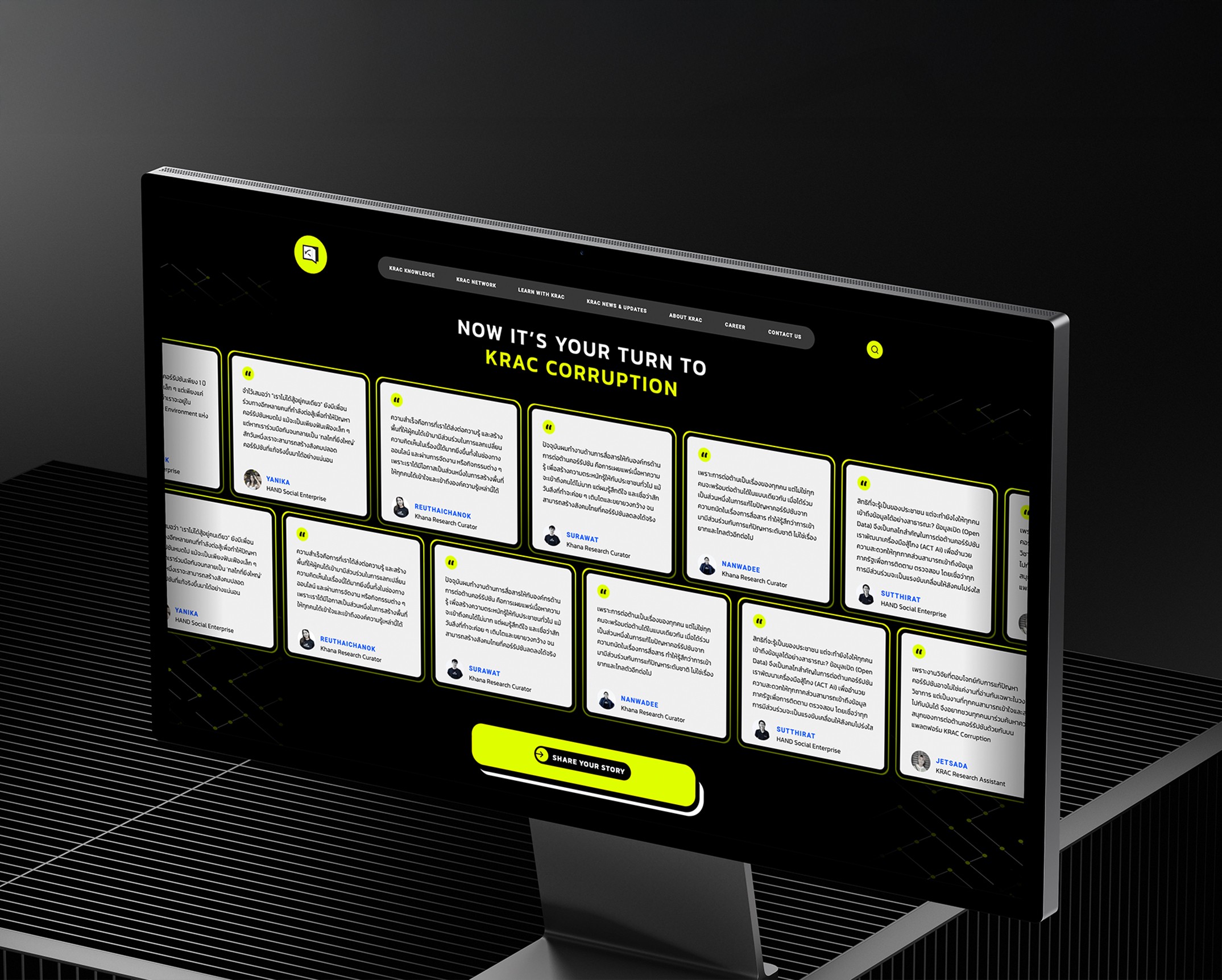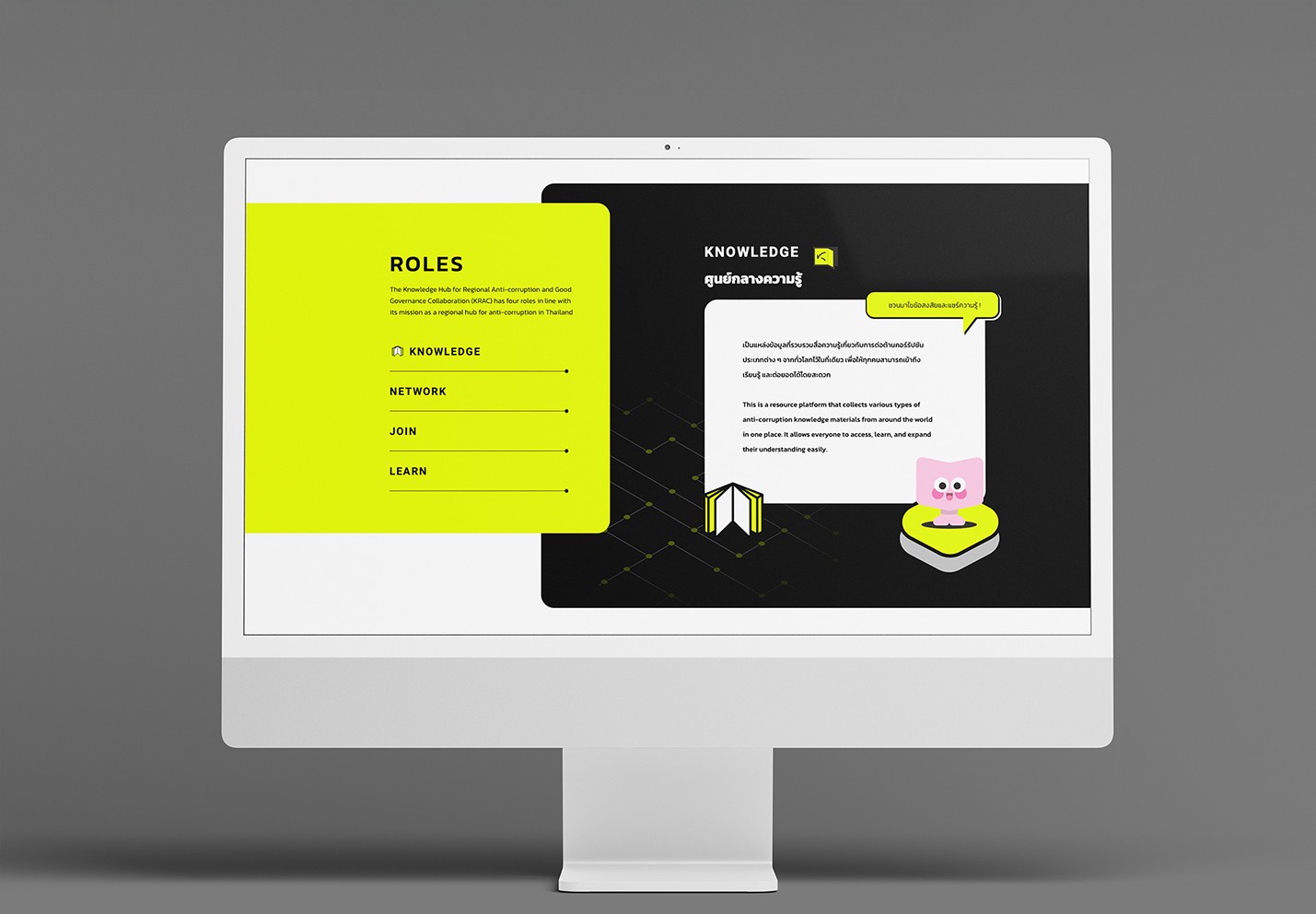 เอเชียมีเดียสตูดิโอออกแบบ UI ที่ดึงดูดสายตาด้วยเลย์เอาต์ที่สะอาดตา โครงสร้างข้อมูลที่ชัดเจน และการใช้ภาพที่มีกลยุทธ์ โดยการให้ความสำคัญกับการออกแบบ UX/UI เราได้เปลี่ยนฐานความรู้ของ KRAC ให้เป็นศูนย์กลางที่มีพลังสำหรับผู้เชี่ยวชาญด้านการต่อต้านคอร์รัปชัน และทำให้พวกเขาสามารถเข้าถึงทรัพยากรได้ในขณะที่ทำให้การค้นหาข้อมูลง่ายสำหรับผู้เยี่ยมชม.
