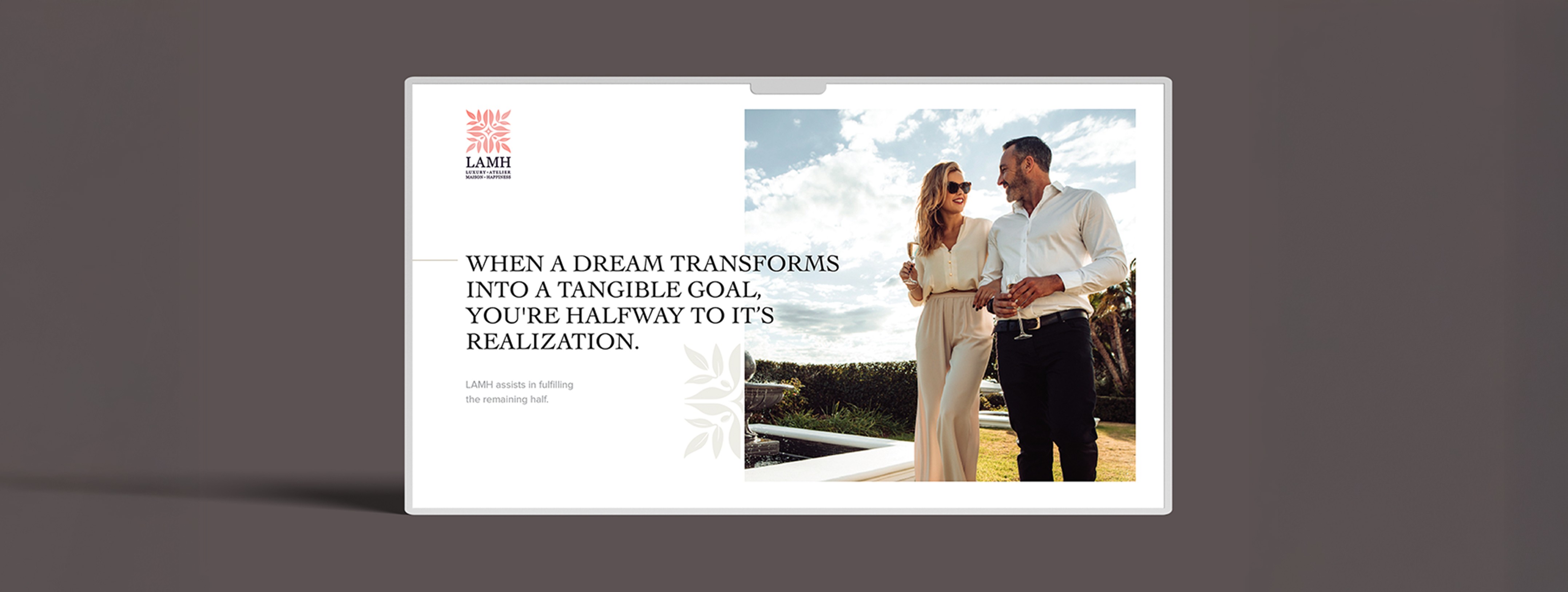 LAMH ได้ร่วมงานกับ Asia Media Studio เพื่อพัฒนาแนวคิดการสร้างแบรนด์ที่ไม่เหมือนใครสำหรับธุรกิจที่เพิ่งก่อตั้งใหม่ โดยคำชี้แจงระบุว่าต้องการแบรนด์ที่มีภาพลักษณ์หรูหรา ทันสมัย และมีคุณภาพสูง Asia Media Studio ได้นำเสนอแนวคิดสร้างสรรค์หลายชุด โดยการออกแบบที่เลือกนั้นสื่อถึงการเดินทางสู่การบรรลุความฝัน หลังจากการปรับแต่งหลายรอบ โลโก้สุดท้ายก็เสร็จสมบูรณ์ ซึ่งเป็นก้าวที่สำคัญในกระบวนการสร้างแบรนด์.