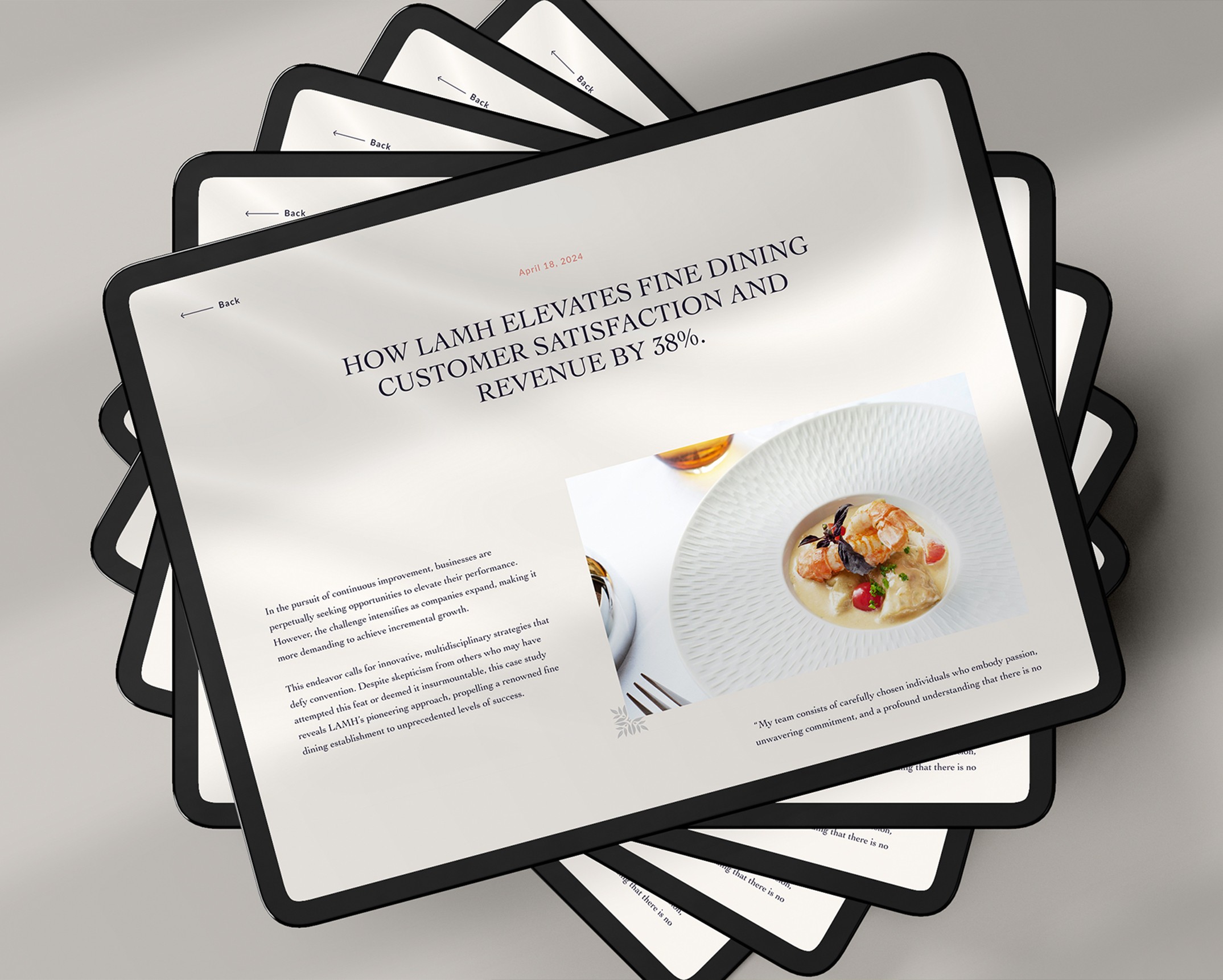 นอกเหนือจากการสร้างแบรนด์ Asia Media Studio ยังได้รับมอบหมายให้พัฒนาชุดเครื่องเขียนทั้งหมดของ LAMH และการนำเสนอองค์กรที่ละเอียดอ่อน นอกจากนี้ยังได้จัดทำแนวทางแบรนด์ที่ครอบคลุมเพื่อช่วยให้ LAMH รักษาเอกลักษณ์ของแบรนด์ที่สอดคล้องกันในทุกวัสดุ เพื่อความควบคุมและความชัดเจนในระยะยาวเกี่ยวกับแบรนด์ของตน