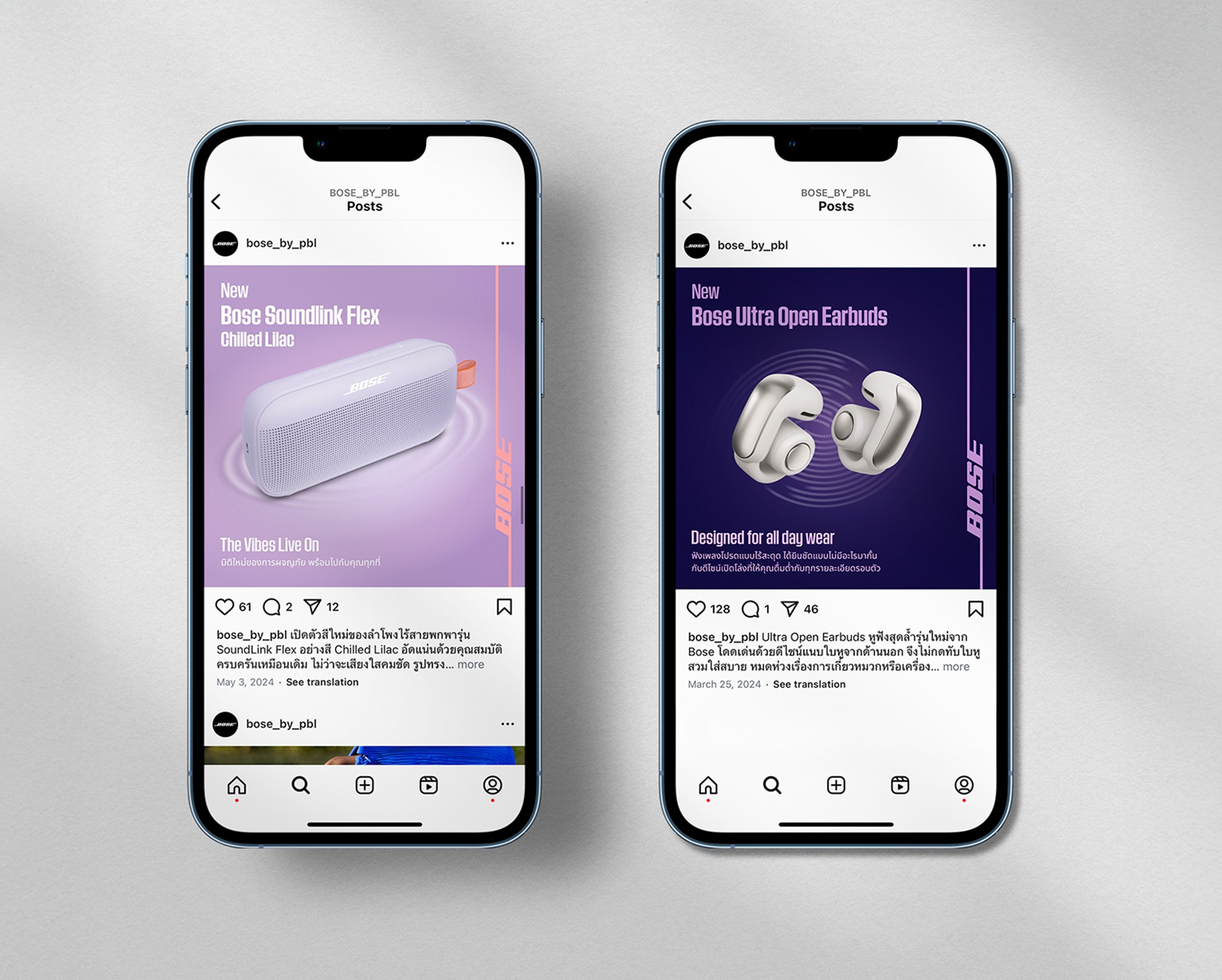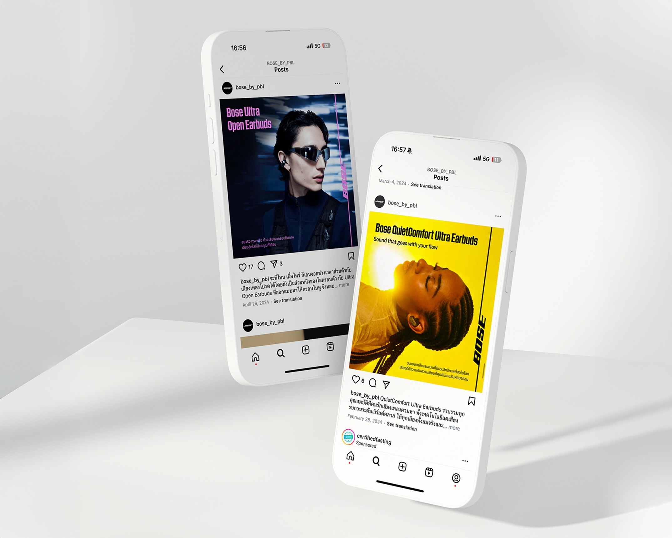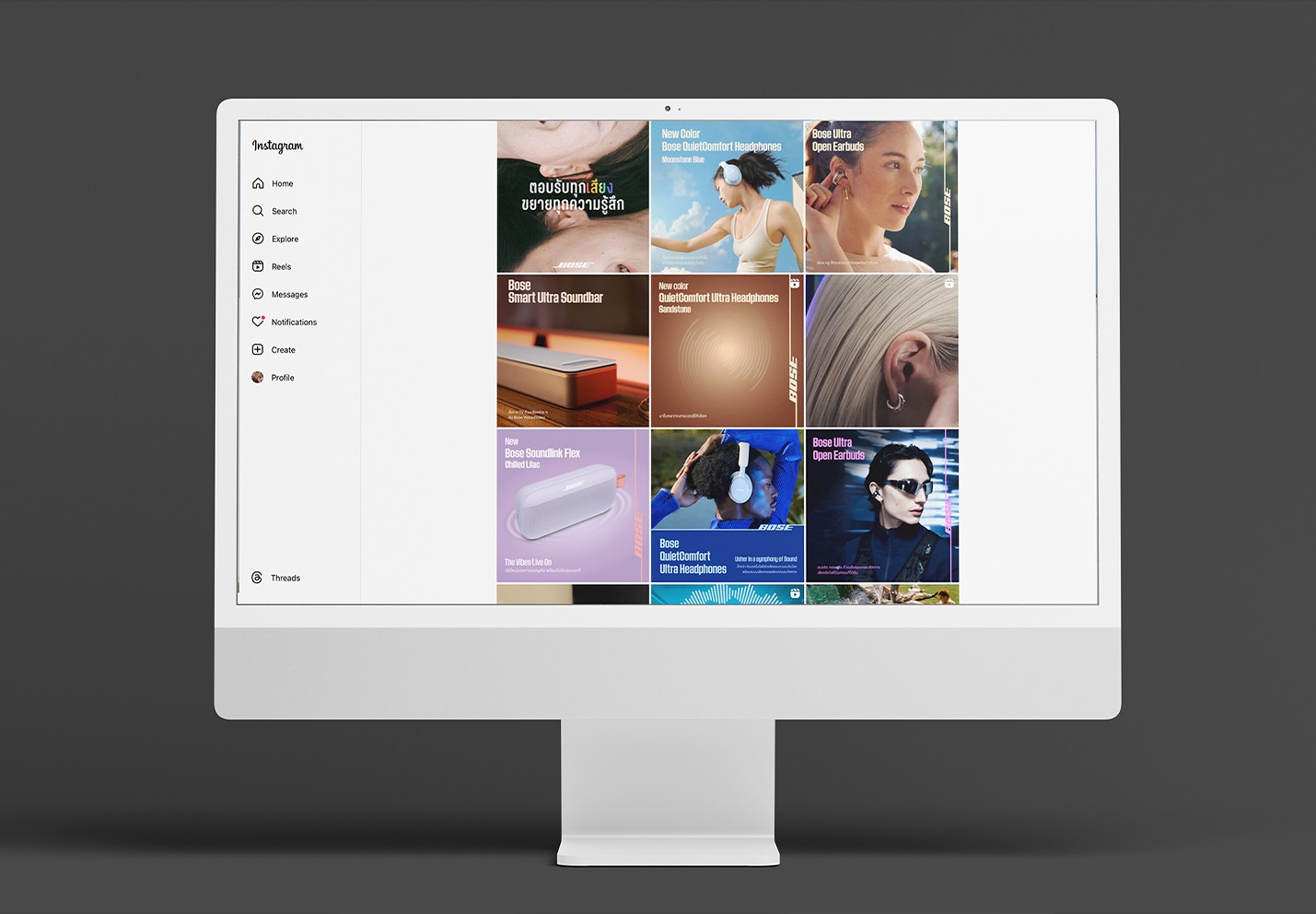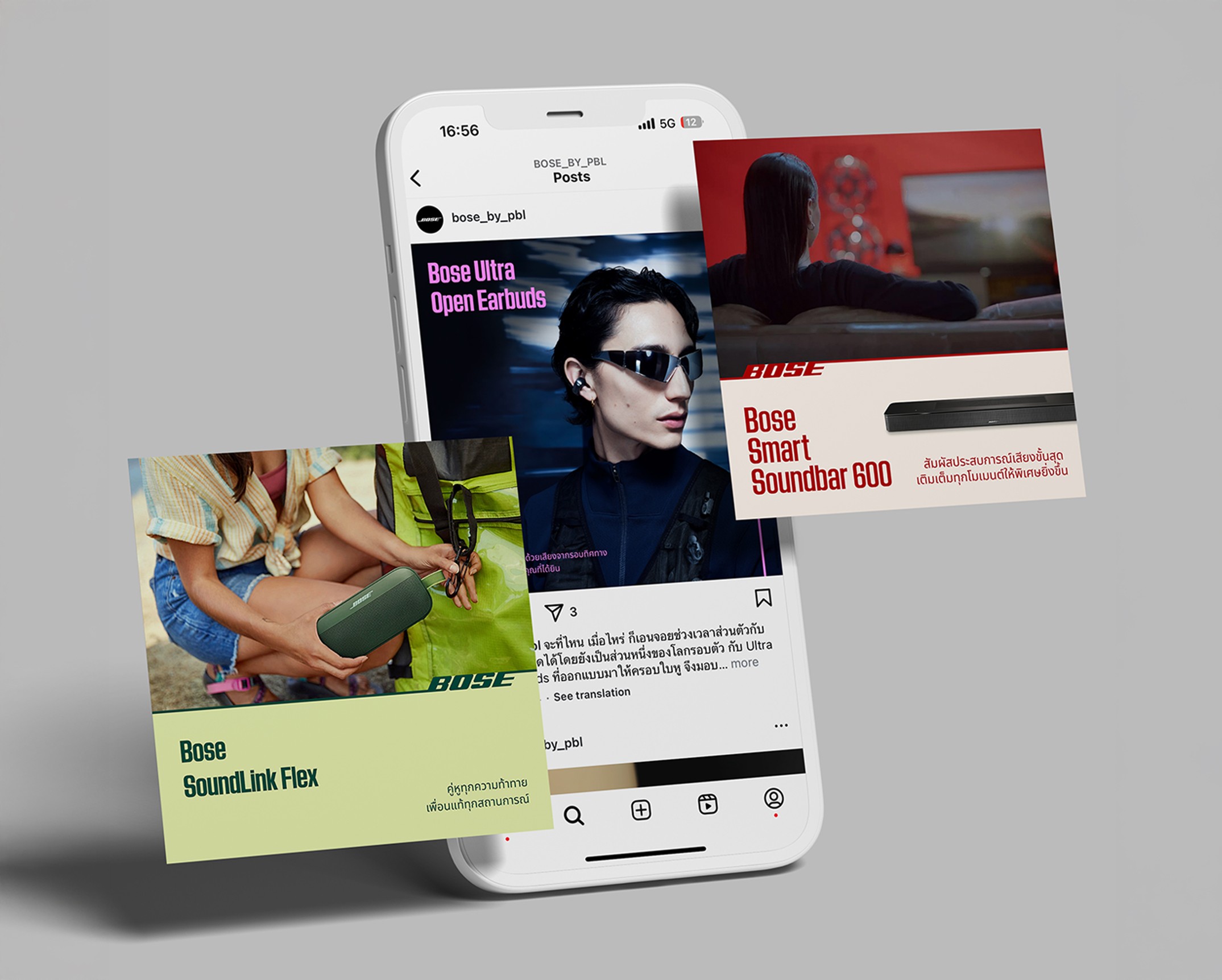อีกหนึ่งความสำเร็จที่สำคัญของโครงการคือการเข้าใจแนวทางและเอกลักษณ์ของแบรนด์ Bose อย่างลึกซึ้ง ผู้จัดการโครงการและนักออกแบบของเราได้ศึกษาอย่างละเอียดเกี่ยวกับรูปลักษณ์ ความรู้สึก และนัยยะของแนวทางแน่นอนว่าการออกแบบแต่ละโพสต์และน้ำเสียงในแต่ละคำบรรยายสอดคล้องกับมาตรฐานและความคาดหวังของแบรนด์ Bose ที่ตั้งไว้อย่างสมบูรณ์